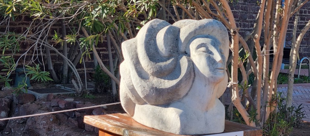 ’s Nachts heeft het gevroren! We zien rijp op de velden. De ooievaars zijn druk met het bouwen van nesten. Tegen de middag lopen we (zonder Hannes ditmaal) de stad in naar het kasteel. Rood zandsteen uit de Moorse tijd (12e eeuw). In de tuin een mooie beeldententoonstelling van vooral hoofden.
