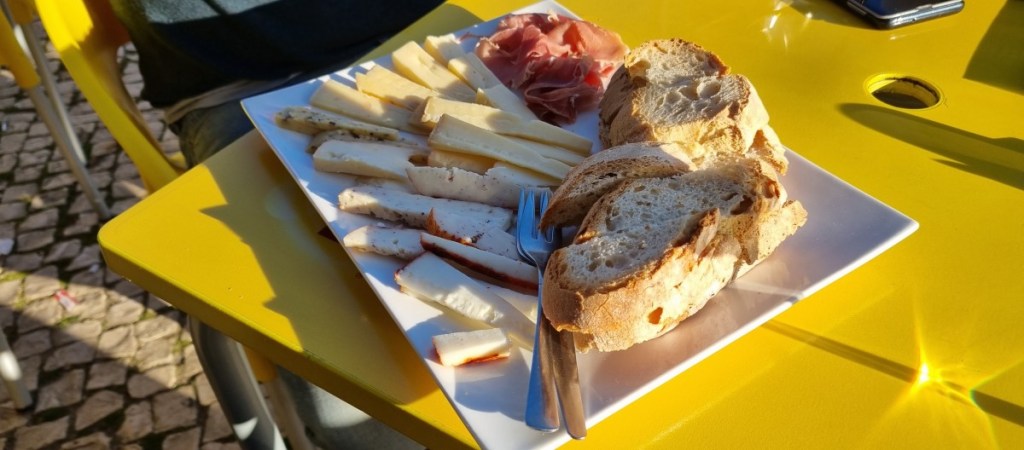 We lopen door naar het archeologisch museum. Dit is gebouwd rond een grote van oorsprong Arabische cisterne (ook uit de 12e eeuw) die pas in 1980 is ontdekt. Verder veel potten en scherven, maar daar hebben wij niet zoveel mee. Dan is het nodig tijd voor een terrasje. We nemen er een kaasplankje bij en worden verrast met een groot bord met allerlei verschillende kaasjes. Erg lekker!