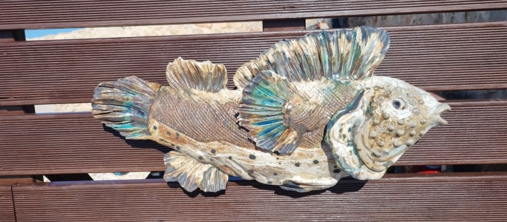 Volgende dag op de fiets naar Cabo de Sao Vincente. Vroeger stonden we hier met de camper, maar alle mogelijke camperplekken zijn nu afgezet en onbereikbaar gemaakt. We genieten van ons fietstochtje. Het is mooi weer en we hebben prachtig uitzicht over de kust. Bij de vuurtoren is de collectie keramiek met als thema de onderwaterwereld weer uitgebreid. Mooi! Terug bij Sagres nog even naar het Praia de Telheiro geweest met Hannes. Een mooi door rotsen omsloten strand. Het is druk met veel surfers.
