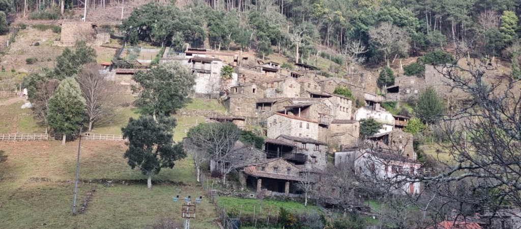 Dan kiezen we voor een weg binnendoor, de N236, naar Lousa. Mooie smalle binnenweg door de bossen en over de heuvels (tot ruim 900 m). Mooi, maar wat een bochten! Kost meer tijd dan verwacht dus we rijden laat binnen op de camping van Coimbra.