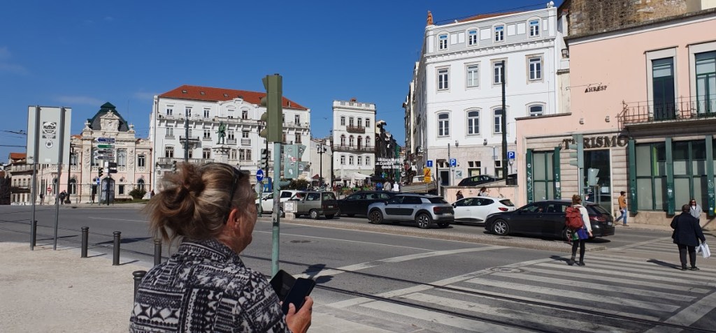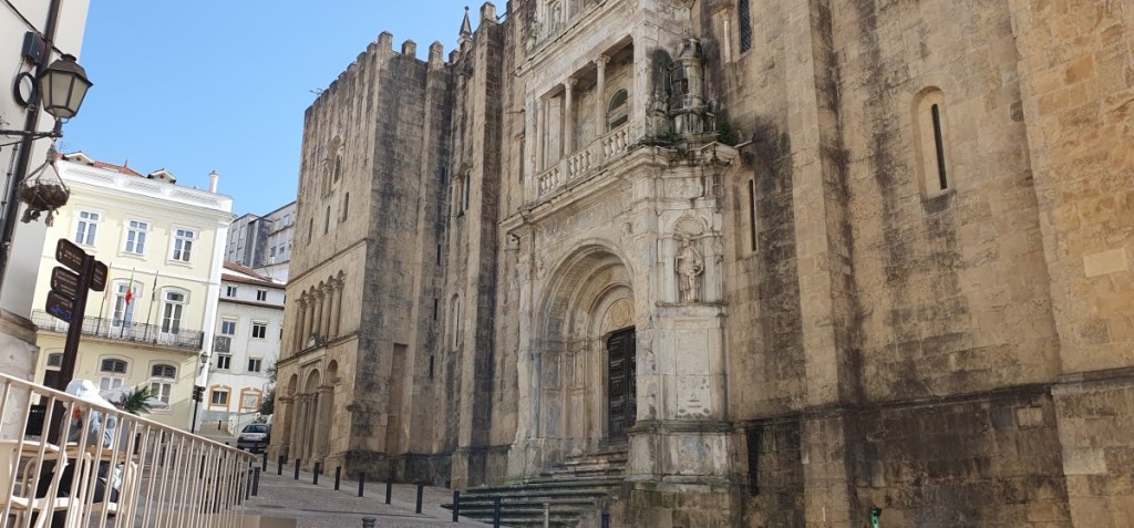 Als alles weer geregeld is gaan we op de fiets Coimbra in. We parkeren de fietsen bij de brug over de rivier de Mondego in het centrum. Het is een steile wandeling omhoog. Als eerst komen we langs de Se Vehlha, de oude Kathedraal. Mooie kerk met kloostergang.