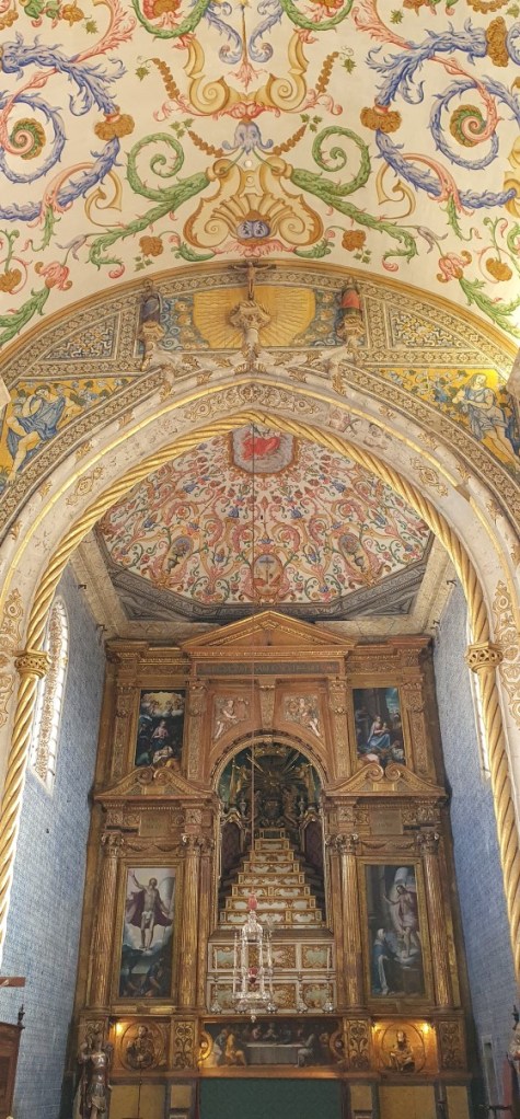 Daarna naar het universiteitsgebouw. Coimbra bezit de oudste universiteit van Portugal. De barokke universiteitsbibliotheek Joanina is prachtig. We mogen geen foto’s maken, maar stiekem…… De St. Michaels kapel valt ons wat tegen maar het plafond is wel heel mooi.