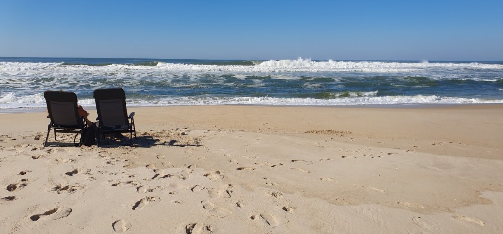 Zondag 19 februari. Prachtig strandweer in Costa de Lavos….. Eigenlijk zouden we vandaag weer verder rijden naar Viseu en langs de N2 verder naar het Noorden. Maar, zoals vaker deze reis, besluiten we lekker te blijven en te genieten van strand, zee en zon….