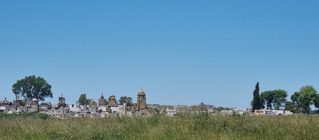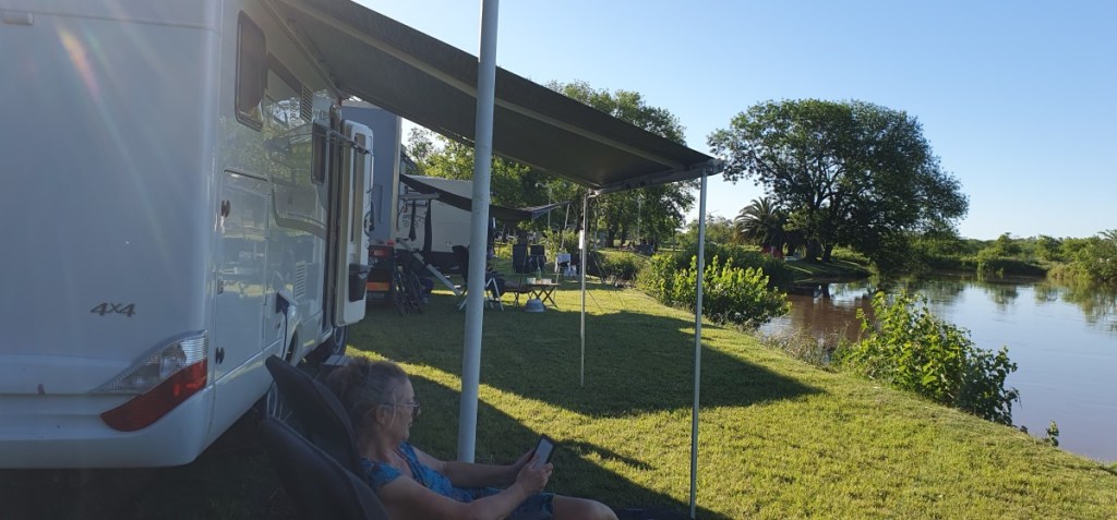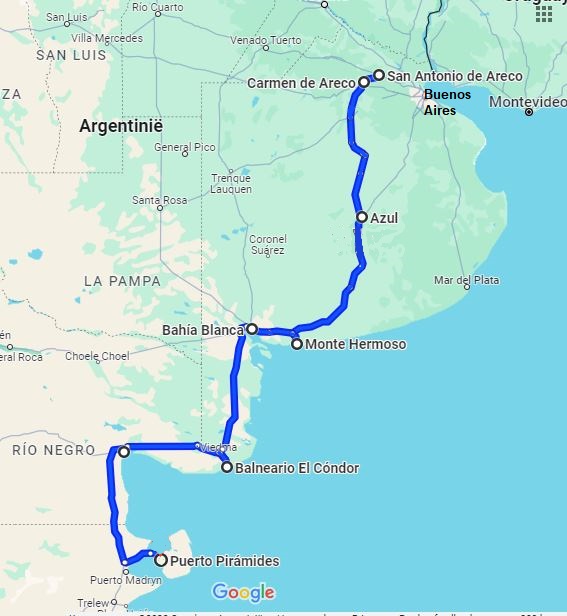 Maandag 13 november is het dan zover en vertrekken we. Eerst nog even benzine getankt (inclusief onze reserve tankjes) en dan op weg volgens de route van Tom, de RV 31. Het asfalt houdt al snel op, het blijkt een dirt road te zijn en geen beste! Maar het is goed te doen met zo’n 30 km per uur. In Carmen de Areco komen we weer op het asfalt. Daarna redelijk tot goede wegen. We rijden door uitgestrekte graanvelden, weilanden met her en der wat vee…. Uitgestrekt en na verloop van tijd ook wel een beetje saai. ’s Avonds zijn we de enigen op de camping in Azul. De dames baňos wordt speciaal voor ons geopend.