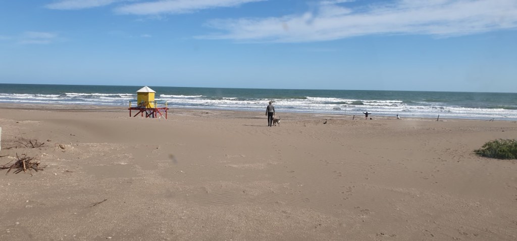 In Monte Hermoso vinden we een prachtig plekje aan het strand. Hannes heeft er gelijk een paar vriendjes bij. Gezamenlijk op zoek naar een strandtentje om wat te drinken. Helaas, niet gevonden. Alles is nog dicht. Het is hier echt nog voorseizoen, hoewel de temperaturen uit de wind al heel aangenaam zijn.