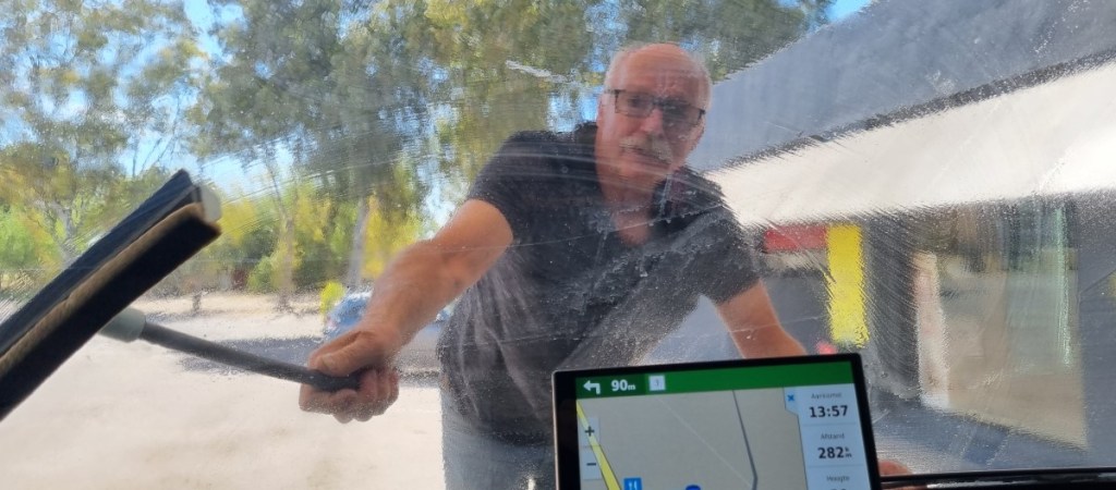 Woensdag 15 november. Frans heeft een Mercedes dealer gevonden in Bahia Blanca op een uurtje rijden. Het probleem met de auto is toch wel heel vervelend, want als de meldingen verschijnen dan werkt de cruise control niet meer en ook de 4 x 4 wil niet aangezet worden.