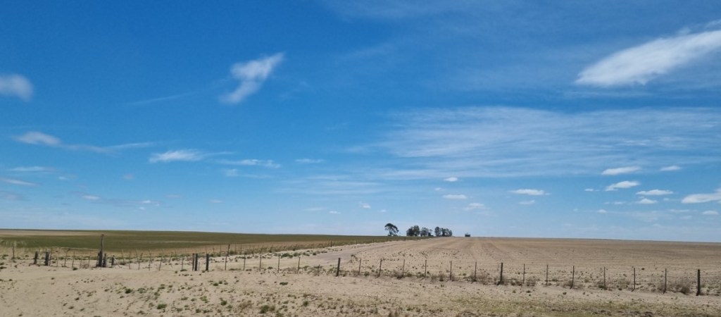 Donderdag weer verder en route naar het Zuiden (Ruta 3). Het waait hard en het is niet echt lekker rijden. De pampa is nu naast uitgestrekt vooral ook heel erg kaal. Met de harde wind ontstaan veel windhoosjes en is het zicht door al het zand slecht.