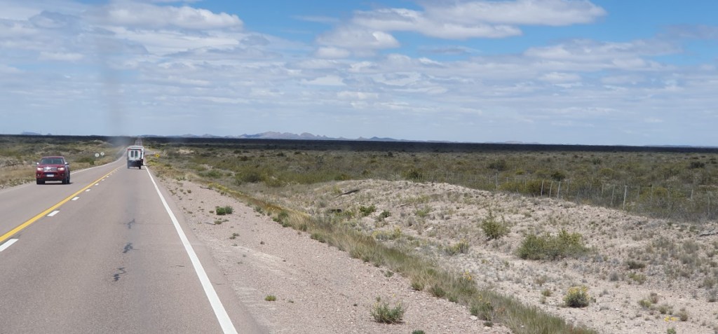 ’s Ochtends is de wind gelukkig wat afgezwakt als we opnieuw de Ruta 3 oprijden. Het waait nog steeds hard maar niet meer zo extreem.