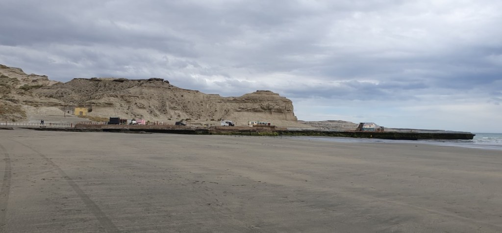 Halverwege de middag hebben we er genoeg van en we stoppen in Las Grutas op een camping net buiten het dorp. Even lekker al het stof af douchen….