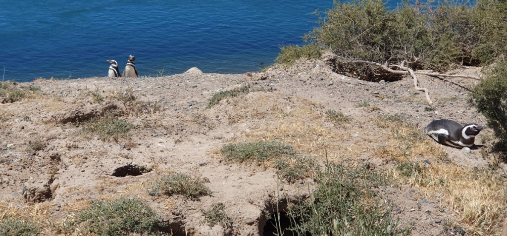 Vroeg wakker, het is al weer warm! We zijn dan ook vroeg op pad naar Punta Tombo. Zo’n 80 km waarvan het laatste stuk ripio. Punta Tombo is een natuurreservaat waar een enorme kolonie Magelhaen pinguïns leven (ca. een half miljoen, hoewel de vogelgriep ook hier hard heeft toegeslagen). Er loopt een wandelpad door de kolonie heen waarbij de pinguïns te allen tijde voorrang hebben….