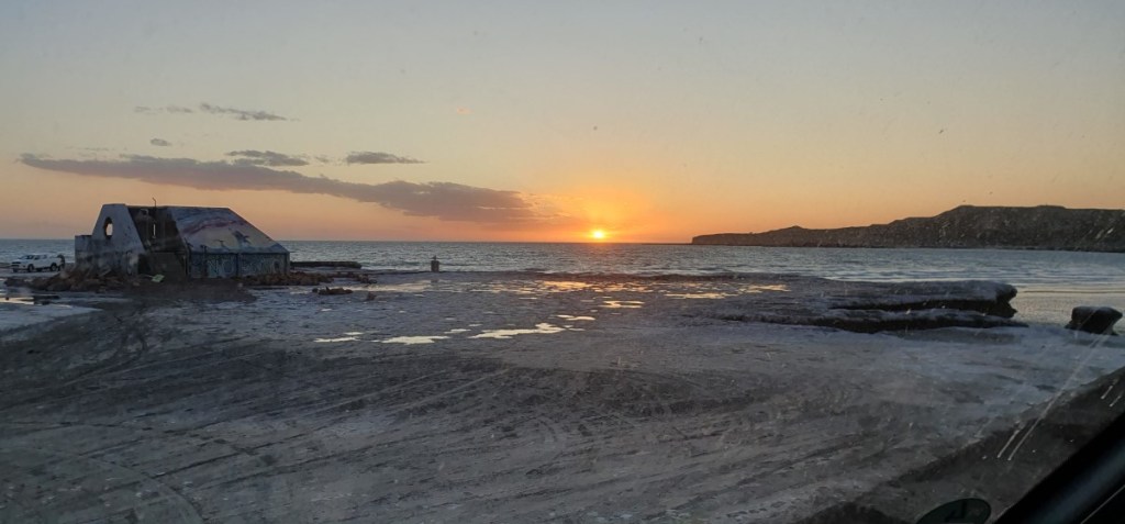 Op de terugweg stoppen we nog even bij een kerkje. Prachtige tocht, maar eenmaal terug in Puerto Piramedes moet de camper weer in elkaar gezet worden. De deurknop van de hangkast vinden we terug onder het rempedaal….. We overnachten op de parking aan zee. Geweldig uitzicht!