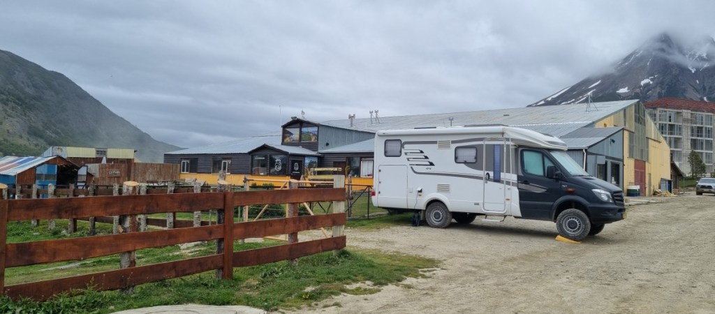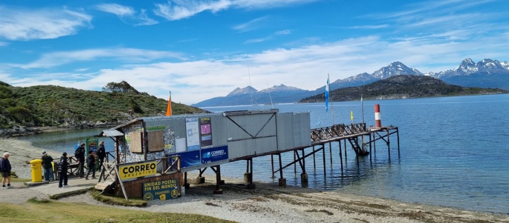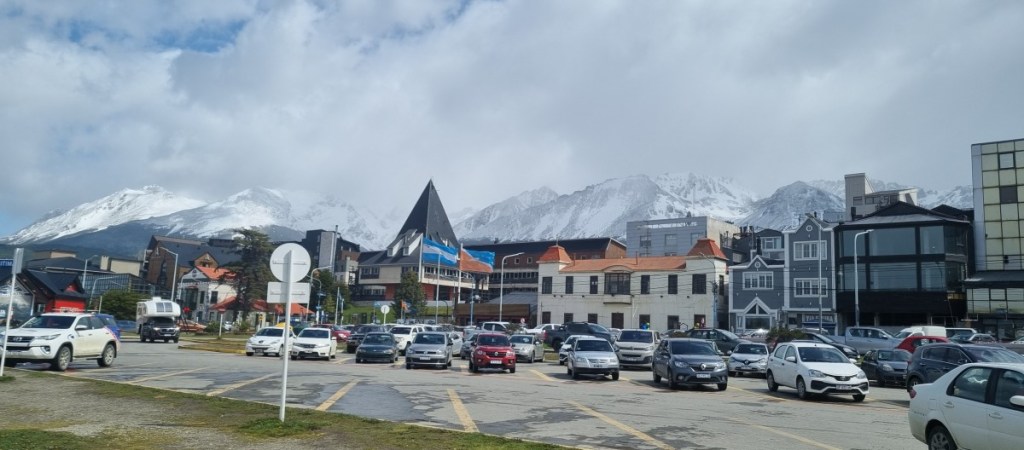 Lands end! Ushuaia is natuurlijk niet echt het einde van de wereld, maar veel verder zuidelijk kun je niet. In ieder geval niet met de auto! Cruiseschepen meren iedere dag aan op weg naar Antarctica en voor veel reizigers is Ushuaia begin of eindpunt van hun Panamericana…. Het is dus druk in het stadje. Wij hebben een centraal plekje aan de boulevard gevonden met uitzicht op de cruiseschepen.