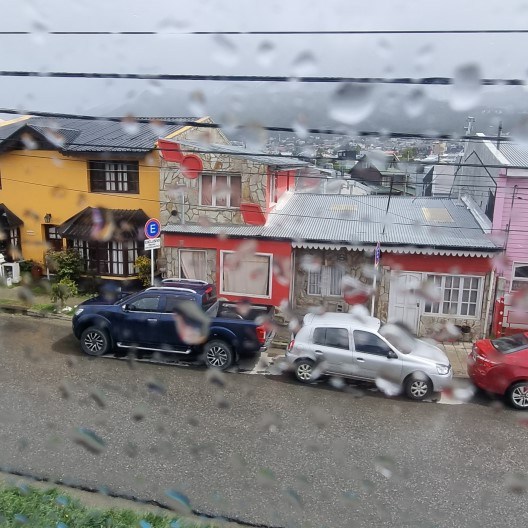 Wel een winderig plekje want we worden vanochtend, dinsdag 5 december, schommelend in de wind wakker. Het is koud, vies, guur en natte sneeuwbuien…. Binnenblijven dus. We maken een rondrit door Ushuaia met een dubbeldekker. Leuk maar niet echt bijzonder.