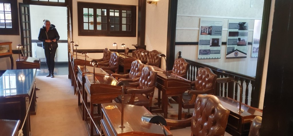 Donderdag 7 december is een beetje een prutdag. Morgen is een officiële vrije dag, dus als we nog iets kunnen/willen regelen voor de afspraak met de garage op maandag moet dat vandaag…. Niet dus! Gaat niet lukken. We zetten het maar van ons af en kopen kaartjes voor de shuttle naar het Parque Nacional Tierra del Fuego. Hannes mag daar niet naar binnen, dus we gaan met de shuttle. Het is lekker weer dus we flaneren wat over de boulevard en bezoeken het oude regeringsgebouw. Grappig is dat de Bols nog in de bar staat!