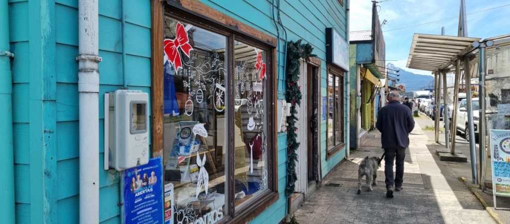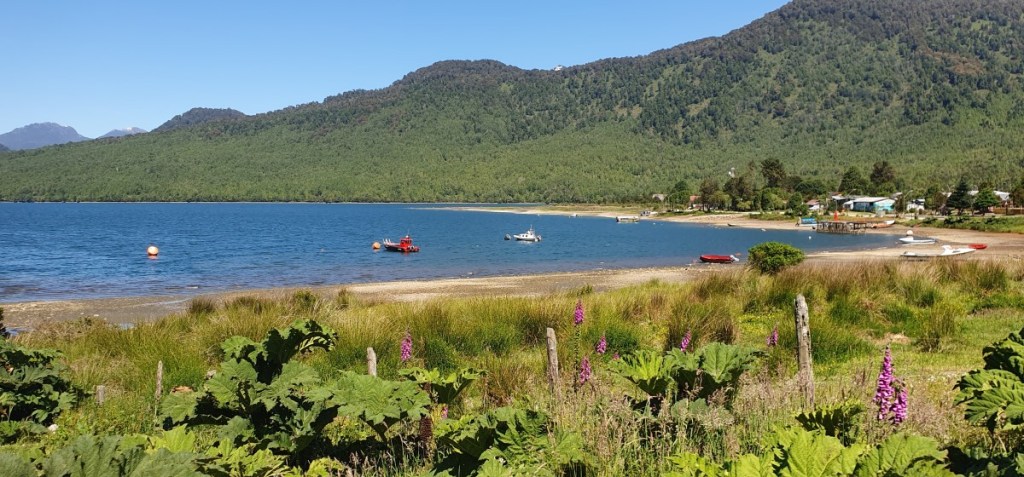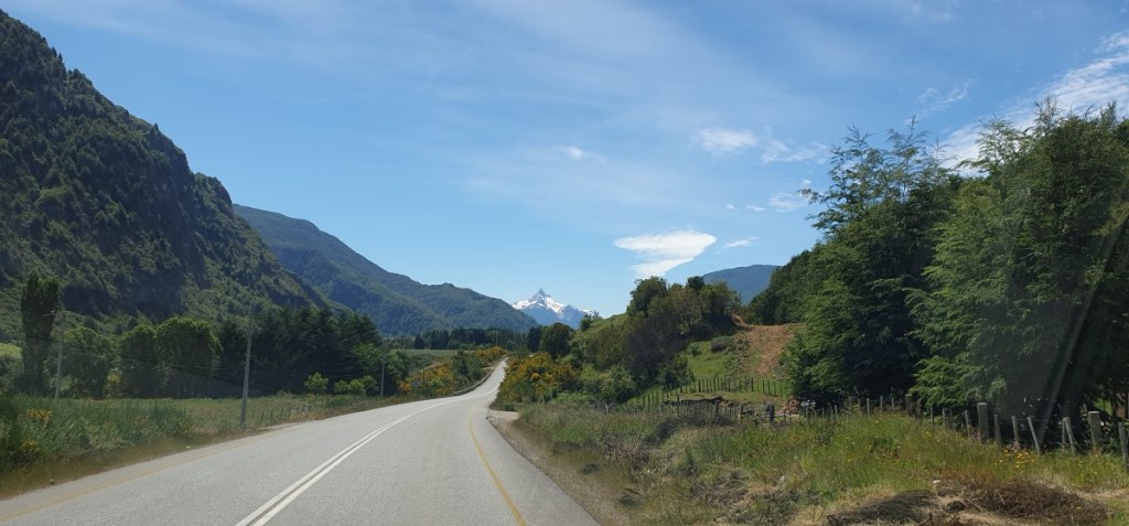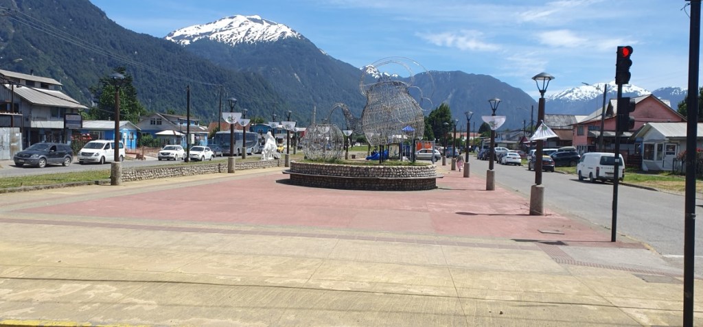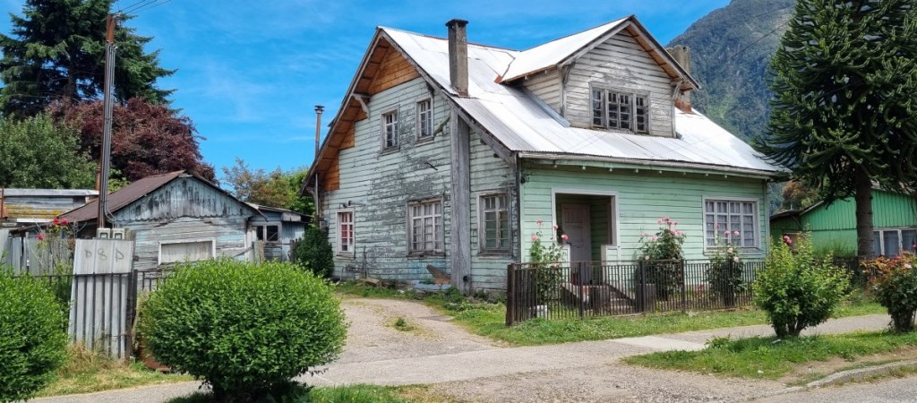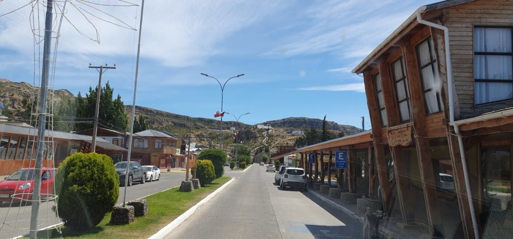 Bij Puerto Puyuguapi stoppen we even. Het dorpje is begin 20ste eeuw gesticht door 4 Duitse broers. We zien zelfs nog een Duitse vlag. De huisjes zijn klein, veelal van hout maar wel fotogeniek. Een nostalgische sfeer van 50 jaar geleden….