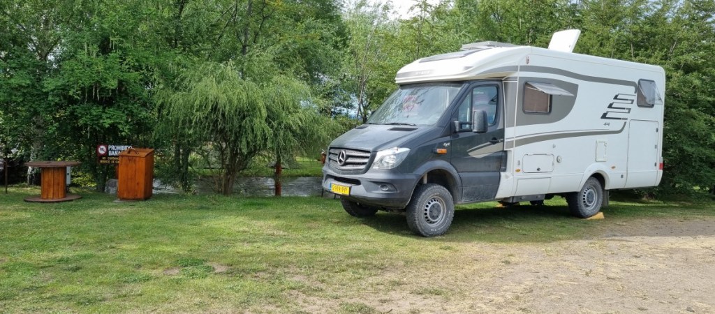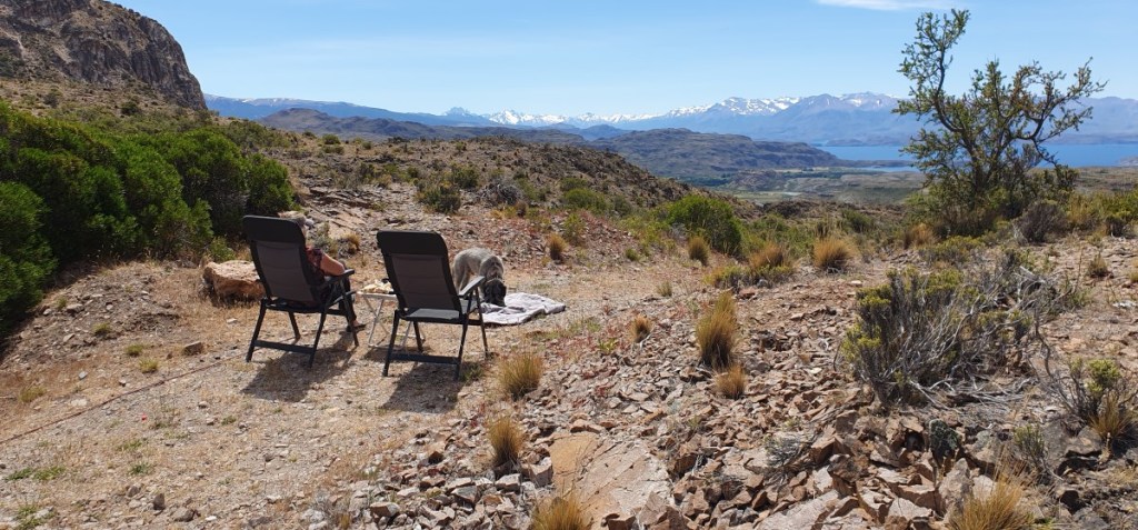 Aan het einde van de middag stoppen we voor de nacht op een parkeerplaats van een monumentje aan de kant van de weg. Opnieuw prachtig uitzicht over het meer.