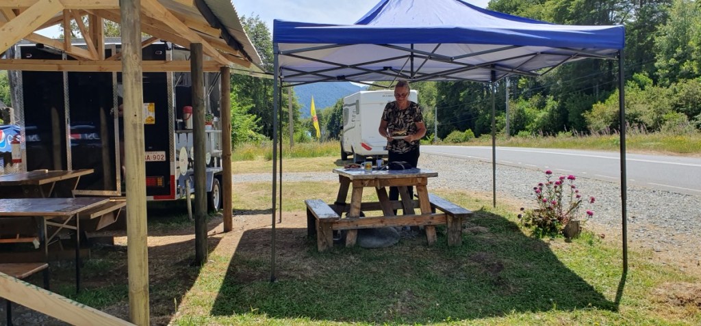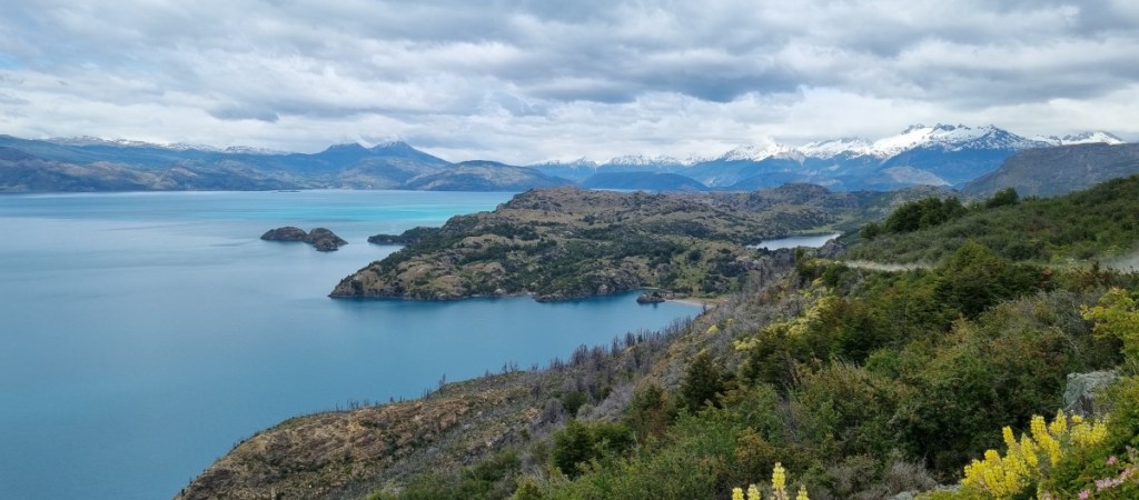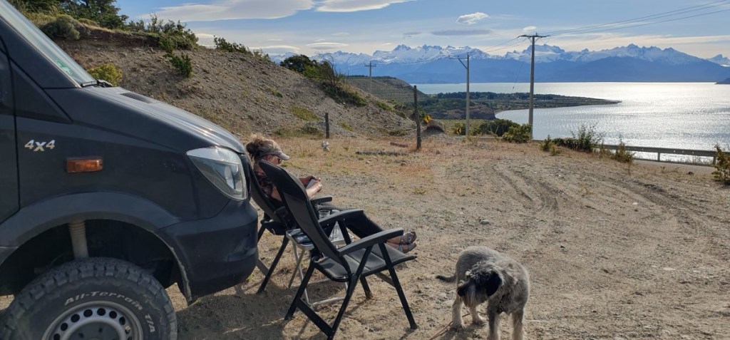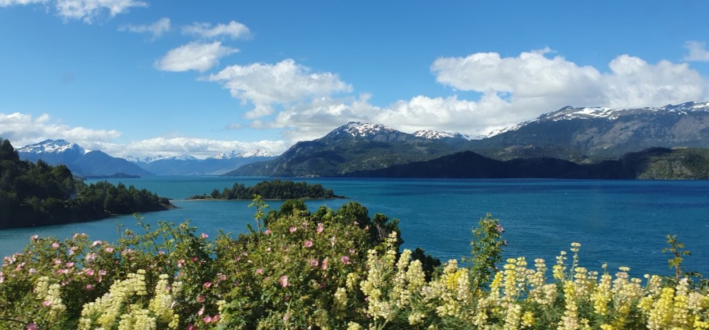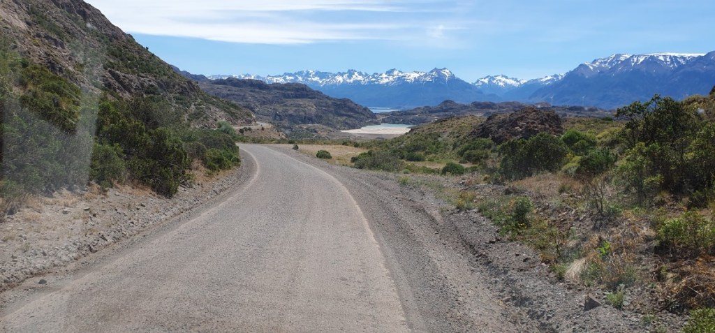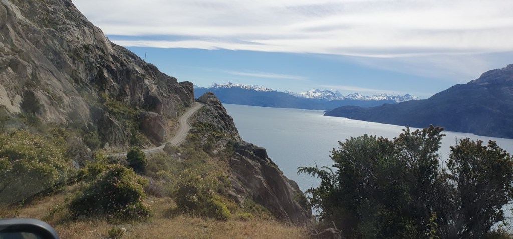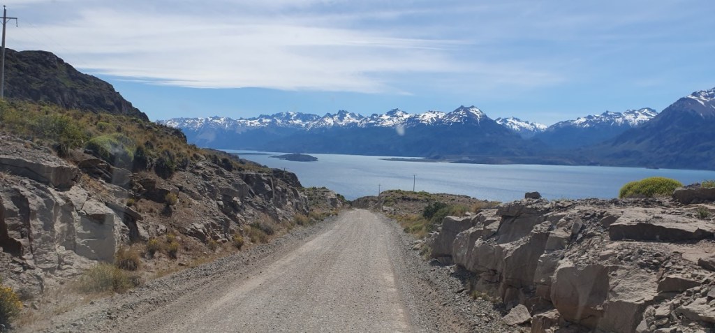 Gelukkig zijn de papieren in orde en we kunnen door naar de grens. De Argentijnse kant is zo gepiept, de Chileense kant duurt iets langer! We worden deze keer zeer uitgebreid gecontroleerd, voor het eerst ook onze garage! Onze eieren overleven deze controle niet. Mag dus ook niet! In verband met Hannes moeten we altijd aangeven dat we plantaardige en/of dierlijke producten bij ons hebben, dus we worden altijd gecontroleerd. Nadat we in Chile Chico (grensplaatsje) ons Chileense telefoonkaartje weer geactiveerd hebben gaan we op weg naar de Carretera Austral. 124 km ripio langs het Lago General Carrera, zoals het Lago Buenos Aires in Chili heet… Het is een onwaarschijnlijk mooie weg. Na elke bocht in de weg zien we weer een nieuw ansichtkaartje.