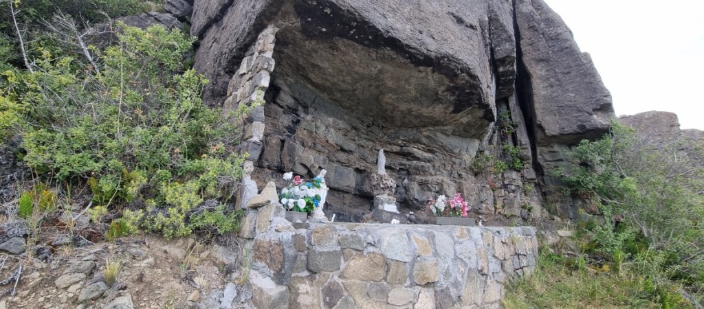 Woensdagochtend loop ik met Hannes omhoog naar het monumentje in een nis van de berg. Een heiligbeeldje en een stel kleurige nepbloemen. Het laatste stuk van de ruta 265 is minstens zo mooi als gisteren. Alleen een beetje minder ruig.