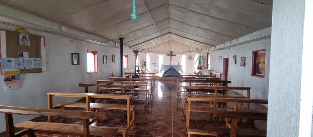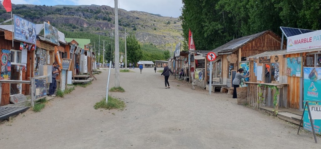 Wij doen de Noordelijke helft van Ruta 7 en rijden naar Puerto Rio Tranquilo. In het dorpje worden we aangesproken door iemand die ons een tour naar de Marmergrotten aanbiedt. Dat willen we toch al doen, dus we zeggen ja. Voor we vertrekken wandelen we door het dorpje. Het bestaat vooral uit bureautjes die allerlei excursies aanbieden, hostels, restaurantjes en een kerkje.
