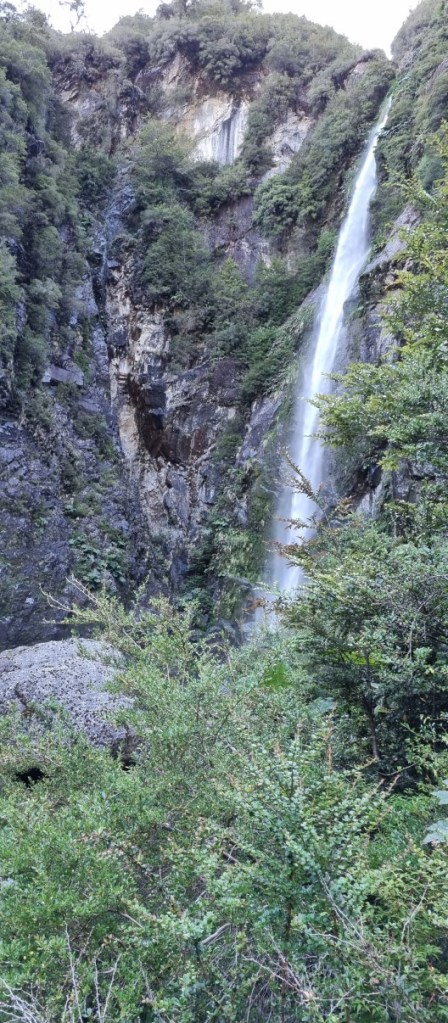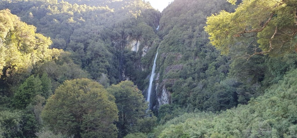 Het blijft prachtig maar eigenlijk is het wat te makkelijk….. Het avontuurlijke van het begin van de Carretera Austral is er wat af. Dan rijden het Parque Nacional Queulat in en stoppen bij de waterval Salto del Condor.