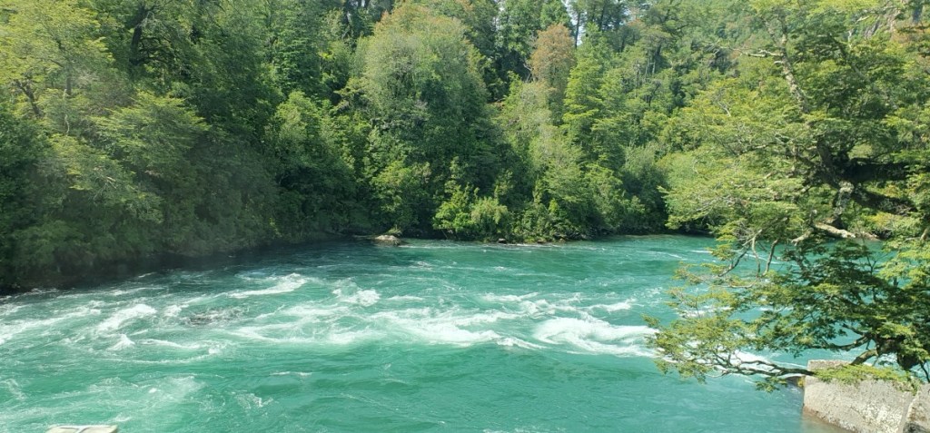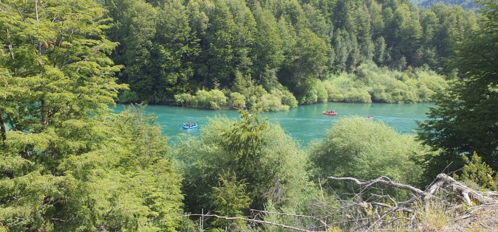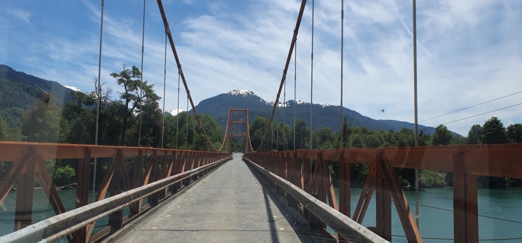 Bij Villa Santa Lucia nemen we afscheid van de Carretera Austral. We slaan af richting Futaleufu en de Argentijnse grens. De weg loopt langs de wild stromende rivier Futaluefu. Dit is de plek voor raften en wildwaterkanoën in Chili. Toeristisch, maar de weg is gewoon slechte ripio, we hobbelen de 80 km in langzaam tempo naar het dorpje Futaleufu.