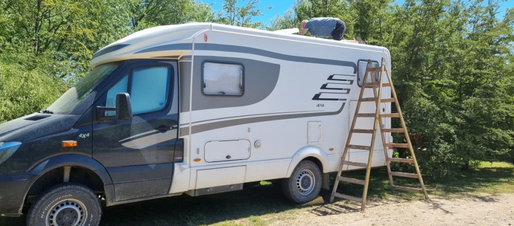 Tijd voor de was, de blog, reparatie dakraam camper en genieten van de idyllische omgeving aan het riviertje met de wit besneeuwde bergen in de achtergrond. Het nieuwe jaar begint goed!