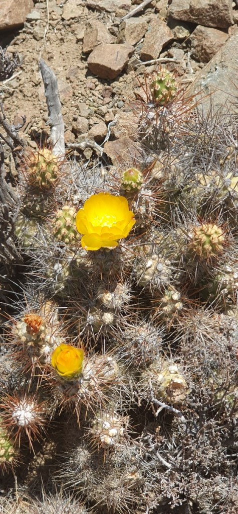 De uitleg in het Spaans is ons te snel, maar de ranger neemt ons apart en in langzaam Spaans krijgen we toch nog veel mee. Super! Halverwege, na het toeristische stuk, mogen we in eigen tempo terugrijden naar de ingang. Wij zijn de laatsten, dus we nemen alle tijd. Met op de achtergrond de rode rotsen van de Barrancas Coloradas is het er zo ontzettend mooi!