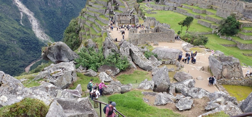 Na een korte wandeling zien we Machu Picchu voor ons…..