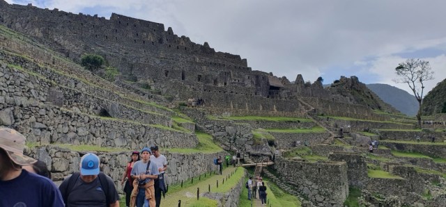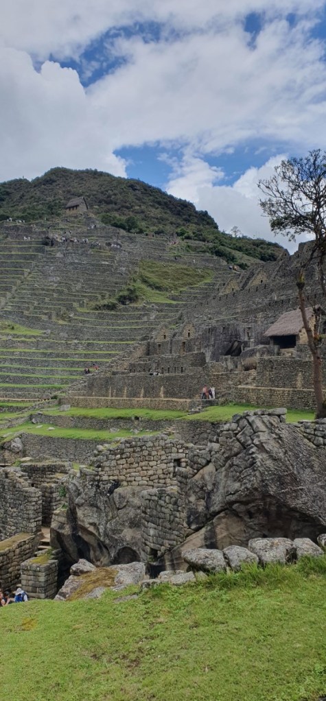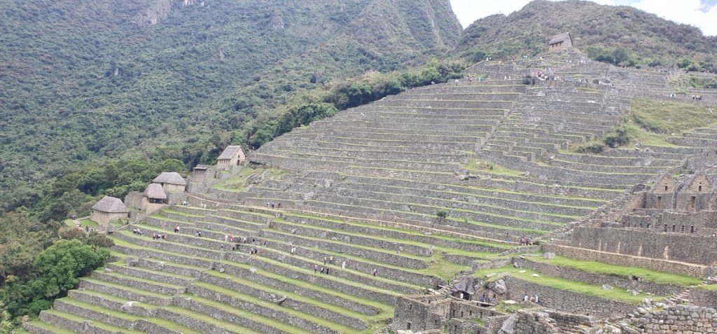 Drie en half uur lang wandelen we met Americo over de terrassen en door de stad van Machu Picchu. Men denkt dat Machu Picchu het ceremoniële en bestuurlijke centrum is geweest van de regio. Het is gebouwd in de late Inca periode (na 1438) maar om onbekende redenen was de stad al verlaten toen de Spanjaarden in 1532 het land binnenvielen. We lopen van het ene uitzichtpunt na het andere en uiteindelijk door de stad zelf. Het is een geweldige ervaring en we hebben enorm mazzel met het weer.