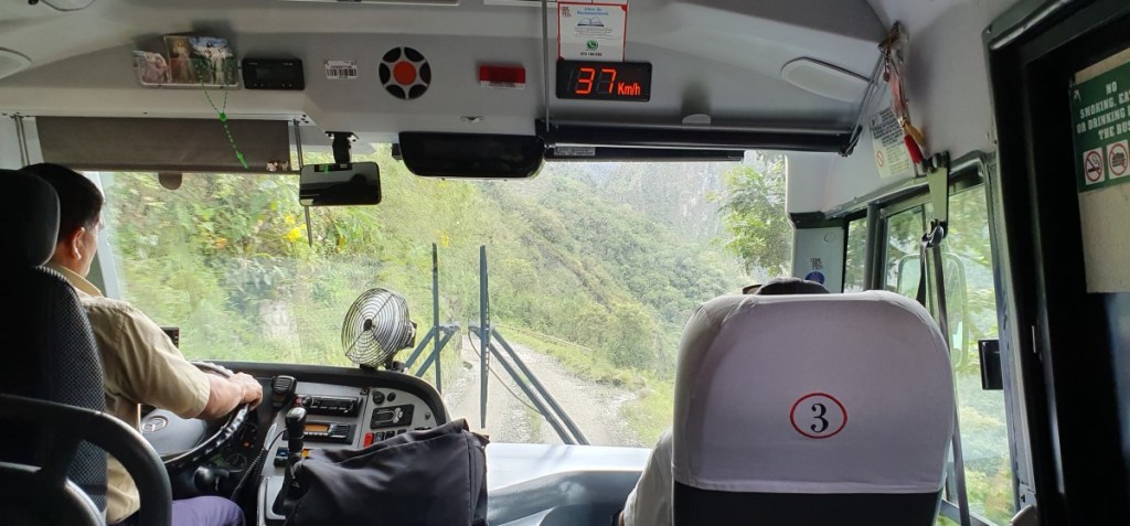 Onze gids Americo brengt ons naar de rij voor de bus. Er staat een enorme rij, maar het gaat als een geoliede machine. 4000 mensen worden zo per dag in tijdslots omhoog naar Machu Picchu gebracht. Wij behoren tot de 9:00 slot en 20 minuten later staan we boven voor de ingang.