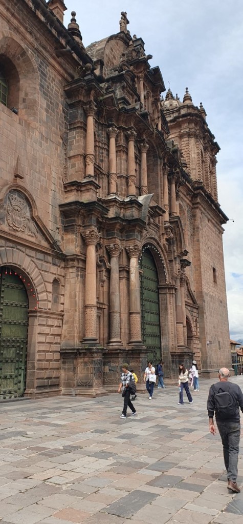 Het zijn er eigenlijk 3: Iglesia del Triunfo (gebouwd ter ere van de Spaanse overwinning op de Inca’s in 1536), de Kathedraal zelf (1559) en Capilla de Sagrade Familia. Alle drie zijn ze gebouwd op de fundamenten van het paleis van de Inca Wiracocha en gedeeltelijk opgetrokken uit stenen die afkomstig zijn van de net buiten de stad gelegen vesting Sacsayhuaman. Eigenlijk geldt dit voor alle Spaanse gebouwen. Er is druk gebruik gemaakt van de Incafundamenten en de stenen van andere Inca sites.