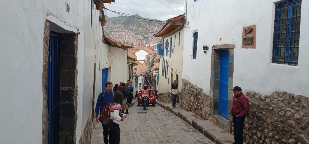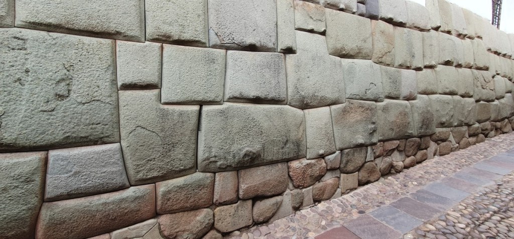 Overal in de muren van de stad zie je de Inca bouwwijze terug. De muren wijken altijd iets achterover en de stenen zijn zodanig bewerkt dat ze altijd in elkaar grijpen (aardbevingsbestendig!) De twaalfhoekige steen is in dat opzicht heel bijzonder.