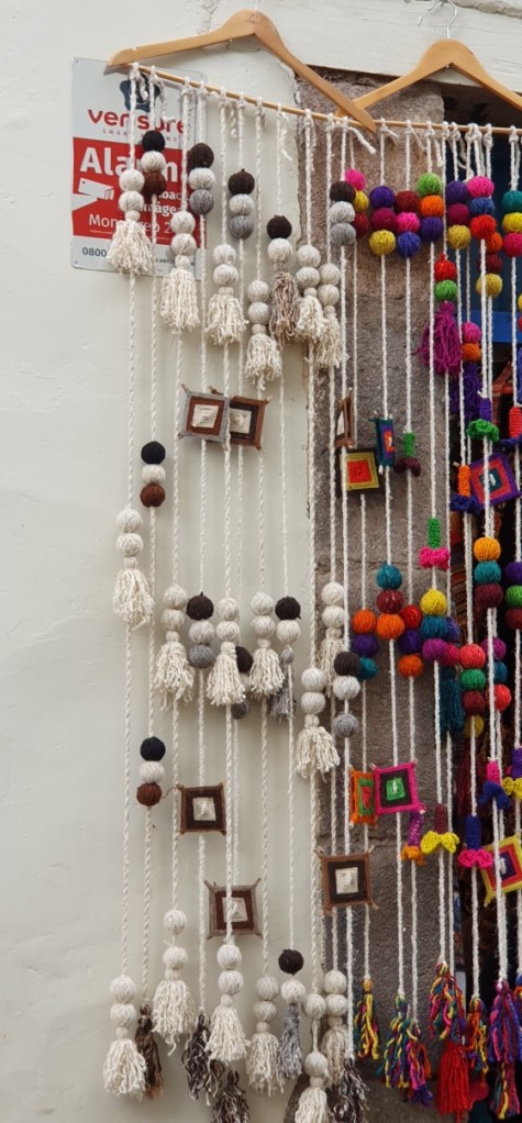 Natuurlijk moet er ook nog gewinkeld worden. Cuzco puilt uit van de winkeltjes met handwerk en traditionele producten. Als we wat kopen worden we ineens in traditionele kledij gehesen en op de foto gezet!