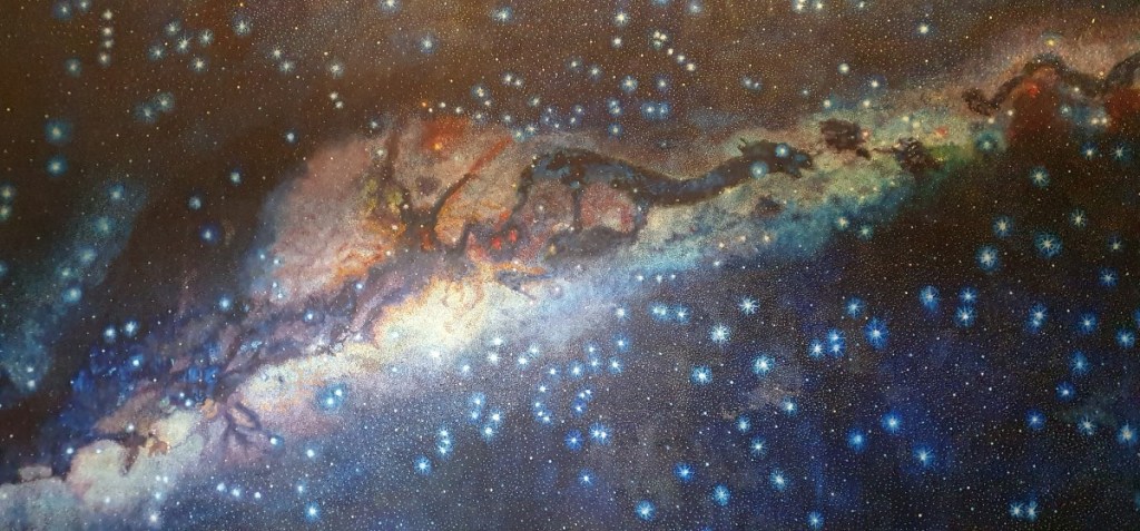 Een ander werk toont de melkweg met daarin de heilige astronomische figuren van de Inca’s (de vos, de lama, de slang).