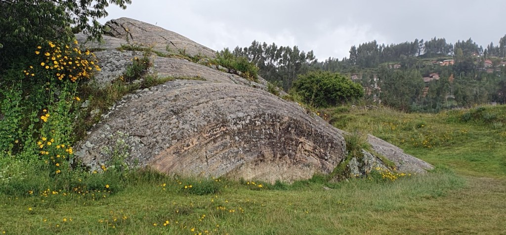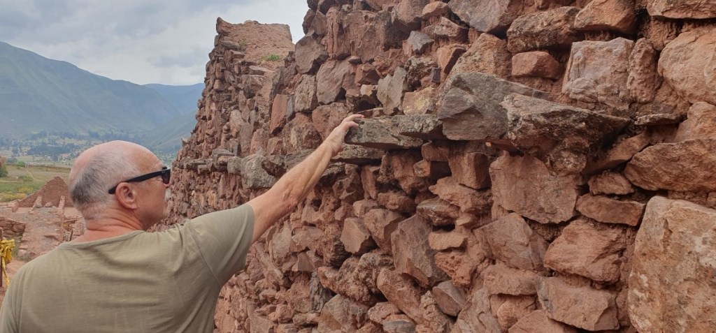 De gids voert ons 2 uur lang langs enorme blokken steen, dubbele zig-zag muren (bliksemflits – god van de bliksem), torens en de troon van de Inca vorst.