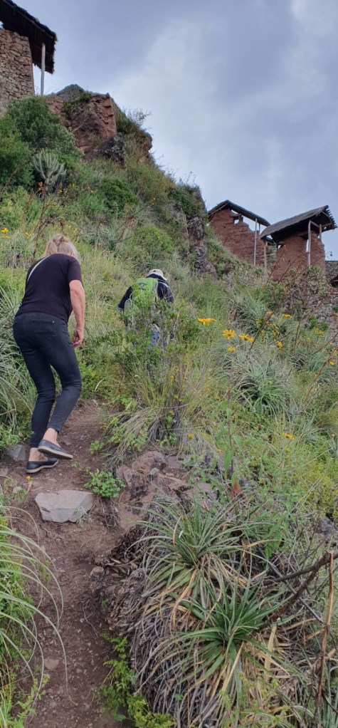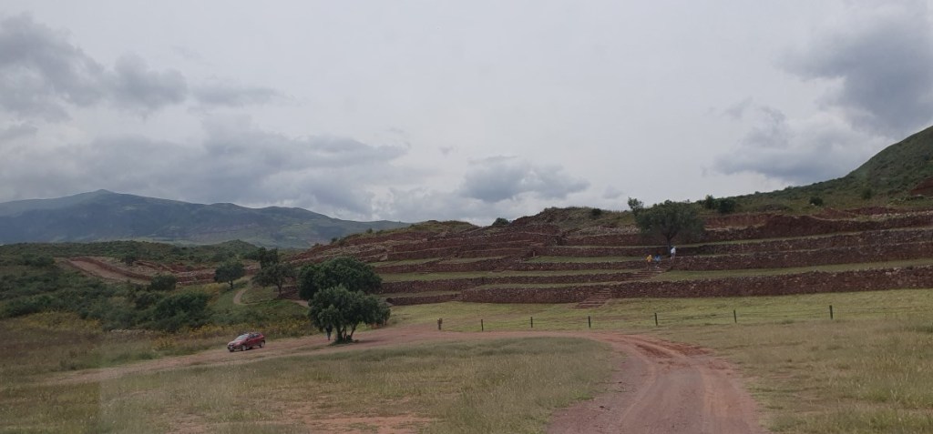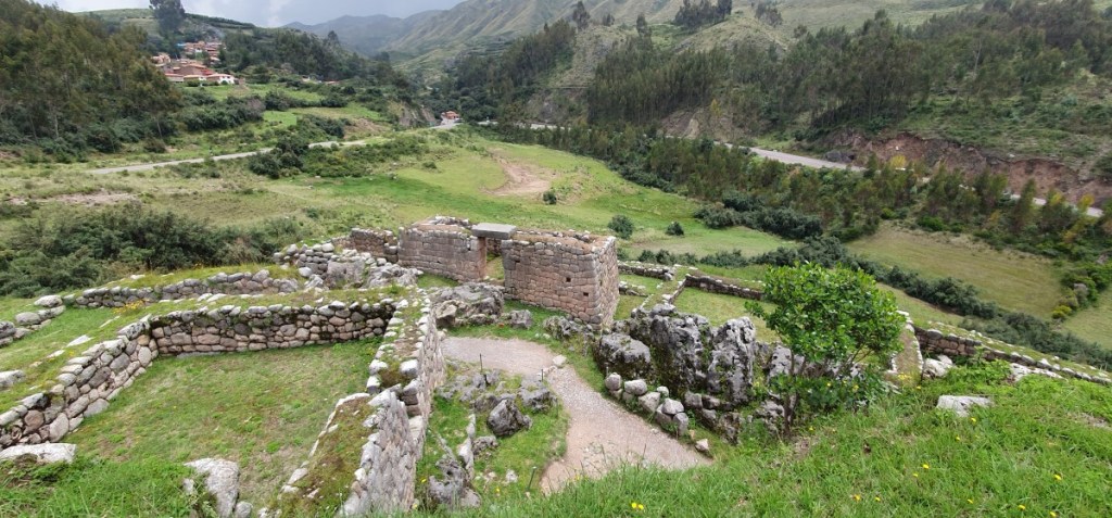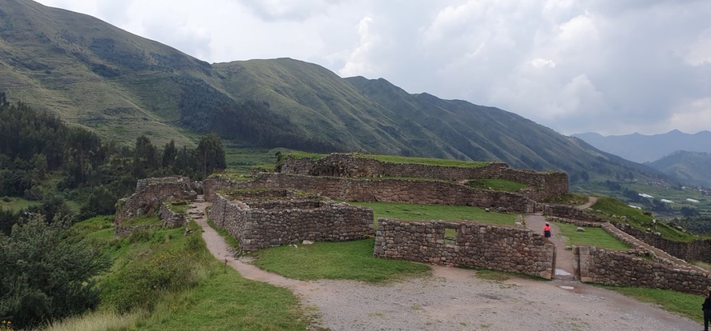 Weer terug op de camping de was opvouwen en inpakken! Als we de volgende ochtend vertrekken is het prachtig weer. We rijden boven langs Cuzco. Onderweg komen we een tweetal Inca ruïnes tegen. De eerste is de vesting Puca Pukara. Trappen, terrassen en restanten van torens. Strategisch gelegen met prachtig uitzicht over de Heilige Vallei.