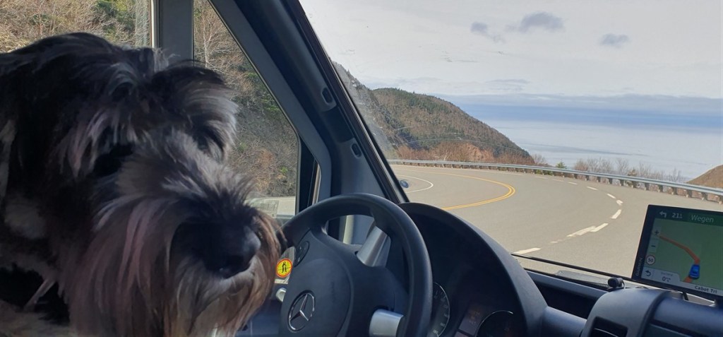 Helaas verdwijnt de zon als snel achter de wolken. Motregen, mist en harde wind. We stoppen in Cheticamp aan het strand. De storm zet door en het is koud. De volgende ochtend neemt Hannes ons mee op een lange strandwandeling en Frans kijkt Feyenoord – PSV. Super spannend, maar we maken toch maar aanstalten om verder te gaan.