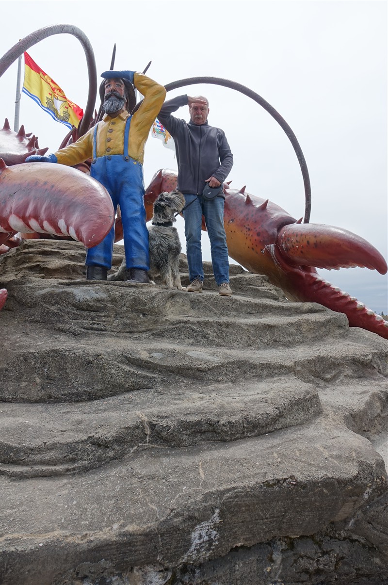 Vrijdag 16 mei. Het is bewolkt vanochtend, maar niet koud. We doen boodschappen in Shediac, de kreeftenstad, en uiteraard staat hier de grootste kreeft ter wereld….