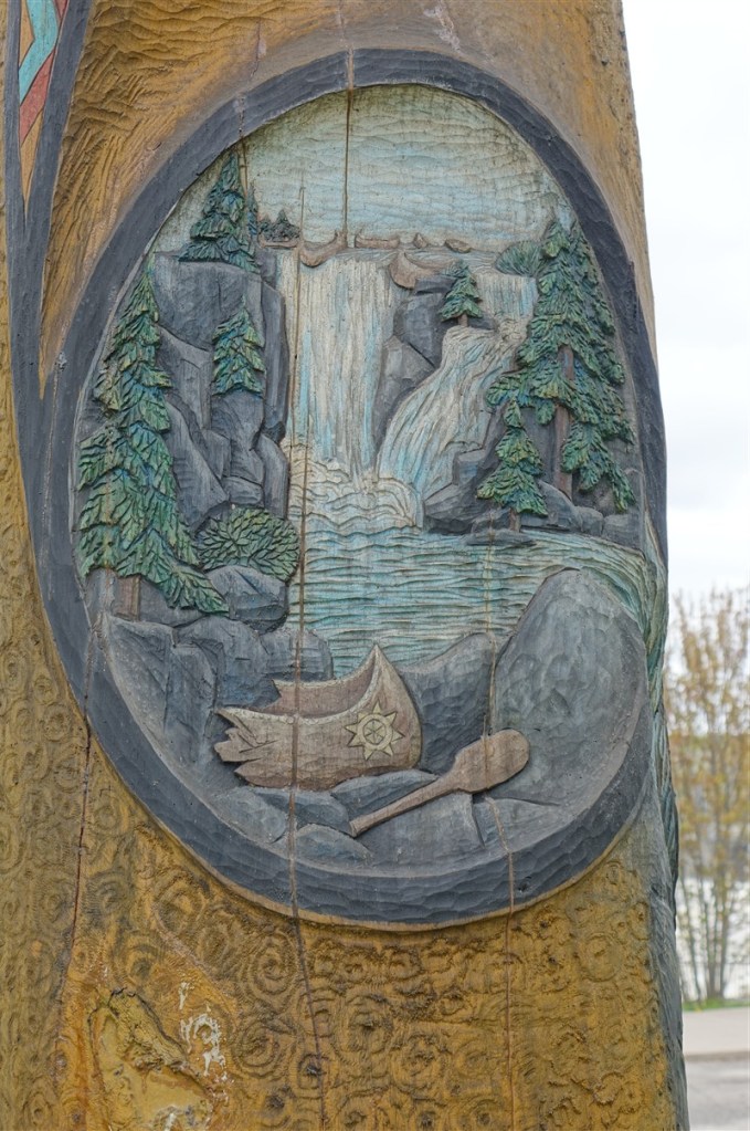 Bij de Reversing Falls ontmoet de zee de rivier in een dagelijks terugkerende strijd tussen eb en vloed. Door het enorme getijdeverschil zet de vloed zoveel kracht dat het zeewater (bruin van het zand) rivier opwaarts stroomt. Bij Reversing Falls zit ongeveer het keerpunt. Als wij aankomen stroomt de rivier stroomopwaarts tot ongeveer 100 meter waar wij staan. Op het keerpunt spelen zeehonden. We zien de neusjes bovenkomen, maar te ver weg voor onze camera. Een paar uur later stroomt de rivier met grof geweld weer stroomafwaarts….