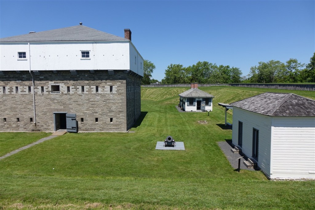 Maandag 26 mei. Het is prachtig weer en we gaan kijken bij de sluizen. Er komt net een schip door, maar druk lijkt het niet. Bij Prescot bezoeken we Fort Wellington, een vesting met aarden wallen en palissaden rondom (1812). Er is net een schoolklas, dus er lopen ook weer soldaten en dames rond in kledij van die tijd. Er is indertijd 2 maal gevochten, 1 maal tegen de Fransen en 1 maal tegen de rebellen die aansluiting zochten met Amerika.