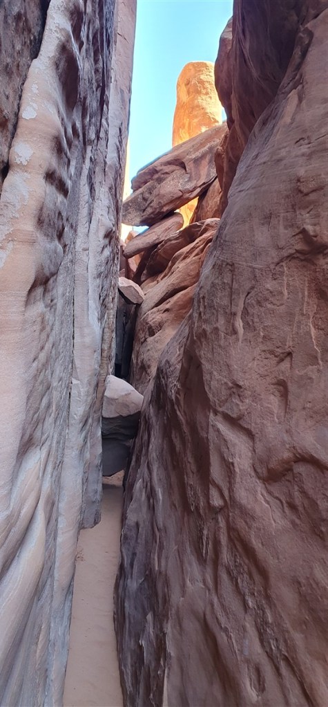 We lopen de trail naar de Sand Dune Arch. Prachtig!