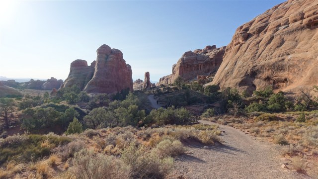 Op de terugweg lopen we langs de Pine Tree Arch en de Tunnel Arch. Stukje terug met de auto zien we ook nog de Skyline Arch. Fantastisch mooi in het vroege ochtendlicht en nog niet druk.