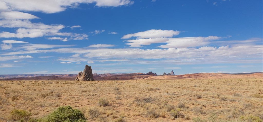 We willen daar bij het benzinestation een broodje kopen, maar rijden onverrichte zake weer verder. Zoveel bedelaars, zo triest! Op dit kruispunt van wegen, in dit verlaten landschap waar helemaal niets is, is het ook voor de inheemse bevolking heel moeilijk een bestaan op te bouwen. Als er dan wat tegen zit…. Wij rijden door naar Monument Valley.
