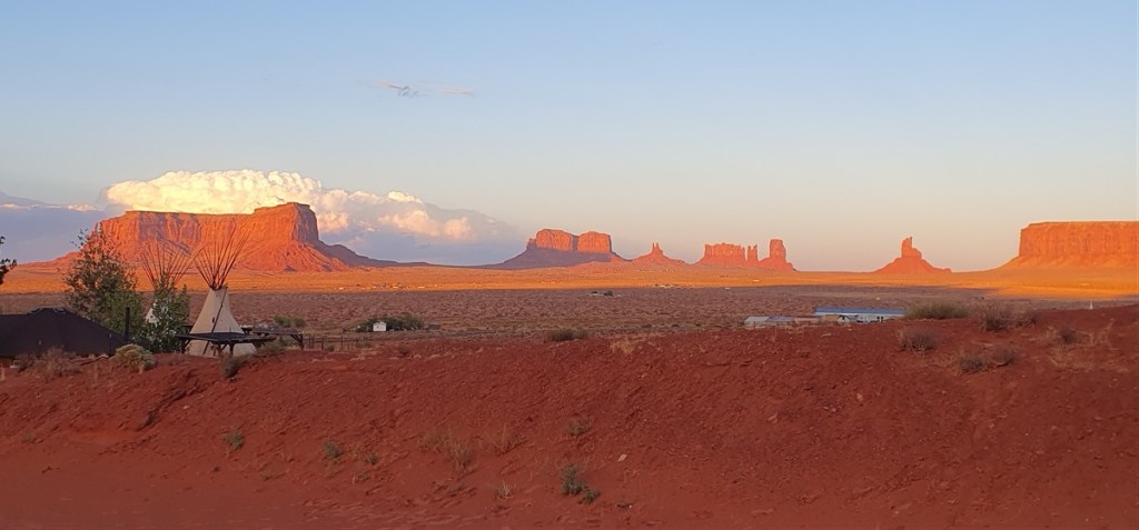 We overnachten op een Tipi Campground met zicht op Monument Valley. Mooi plekje met ook weer een zeer vriendelijke Navajo gastheer.
