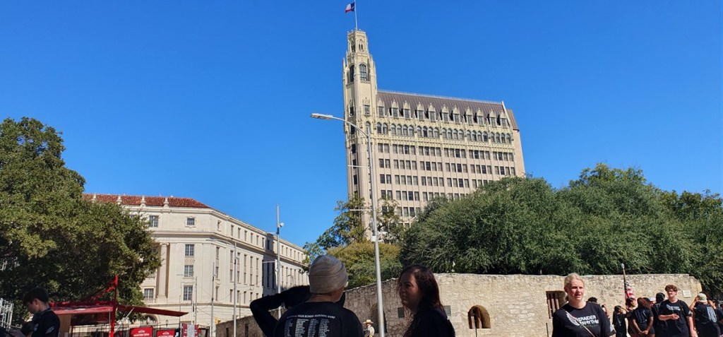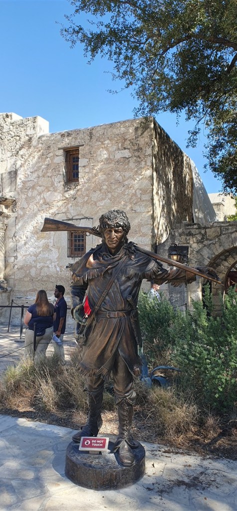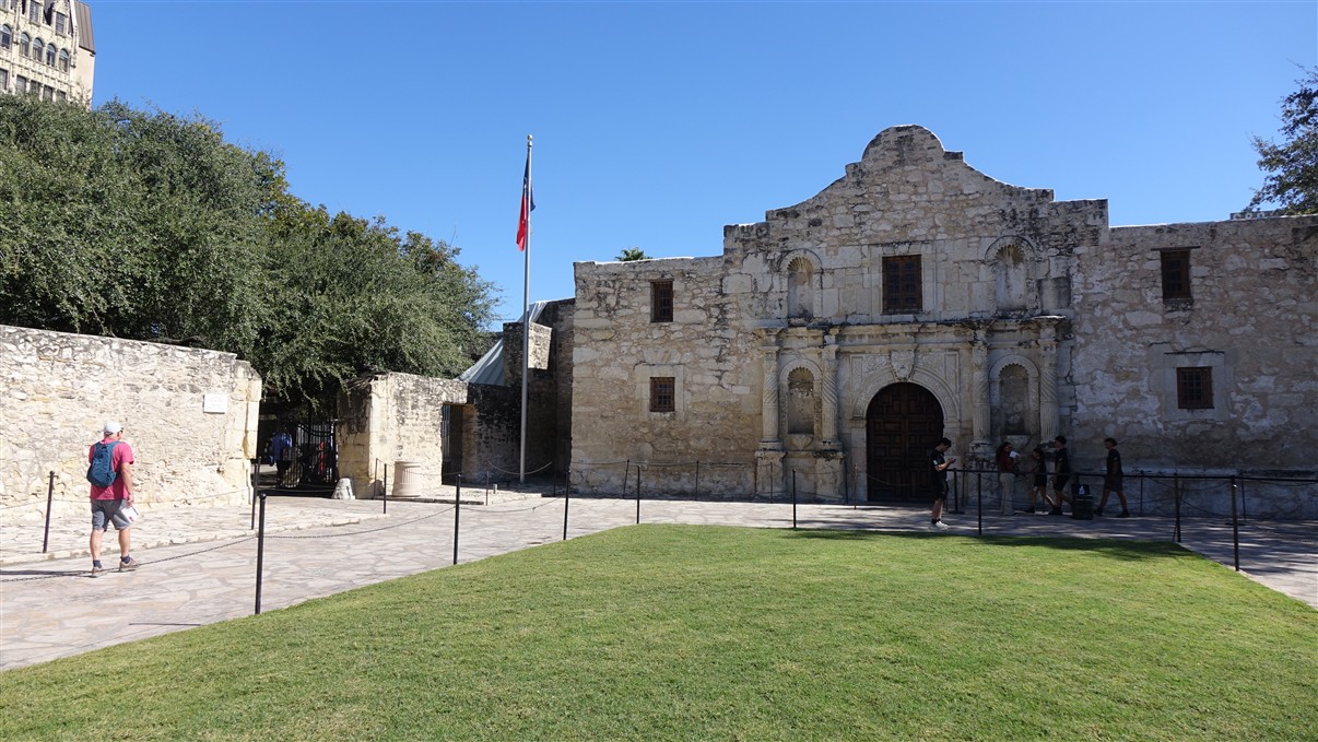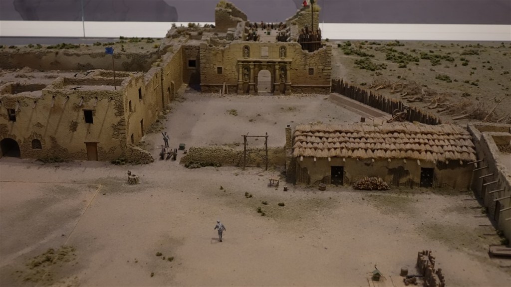 We lopen rond met een audiogids en luisteren naar de verhalen over wat er gebeurd is. We bekijken de oude missiekerk en het museum, zien een indrukwekkende film over het beleg en een mooie maquette hoe het fort met missiepost er in die tijd uitzag.
