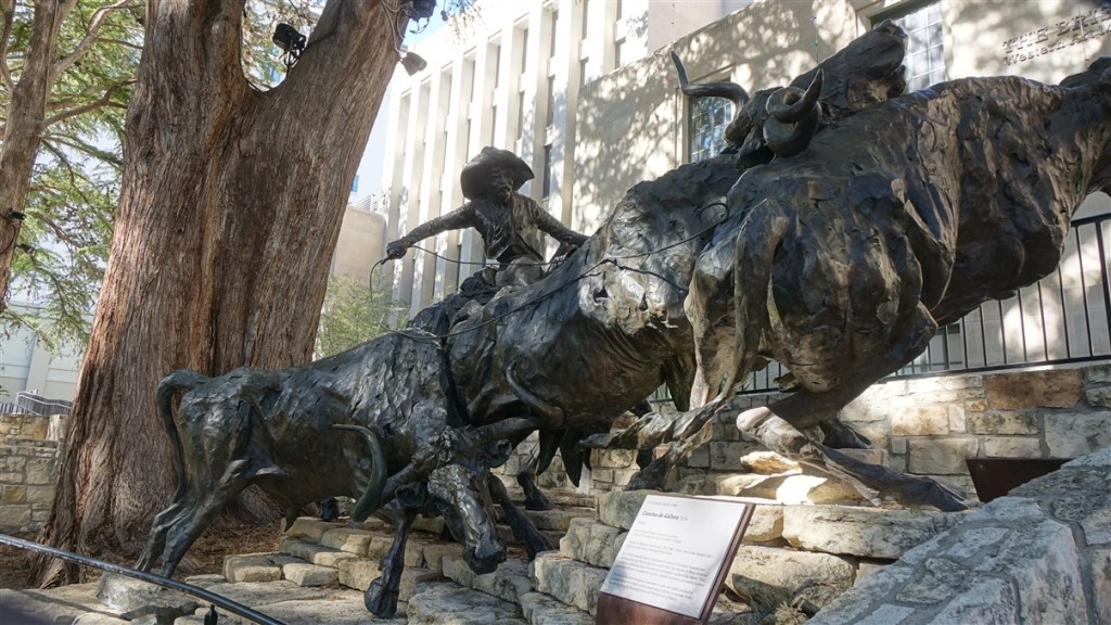 De bus zet ons af op drie blokken van de Alamo. De toeristische trekpleister van de stad. In 1836 probeerde Texas het Mexicaanse juk af te werpen. In het 10-daags beleg van de oude missiepost Alamo door de Mexicaanse troepen vochten 200 man tot de dood tegen 6000 Mexicanen. De kreet ‘Remember the Alamo’ was de strijdkreet waarmee een paar maanden later de Texanen de Mexicanen overwonnen en Texas deel ging uitmaken van de VS. De grens werd de Rio Grande rivier.