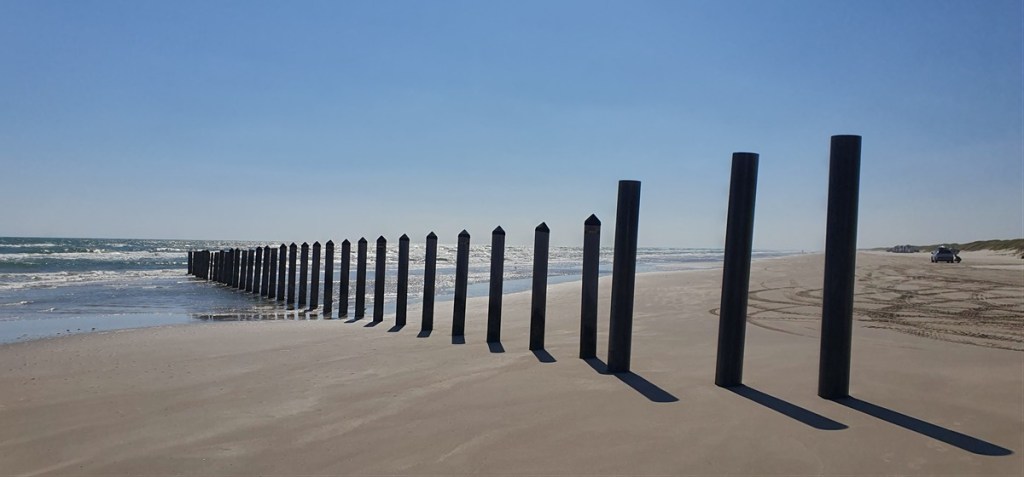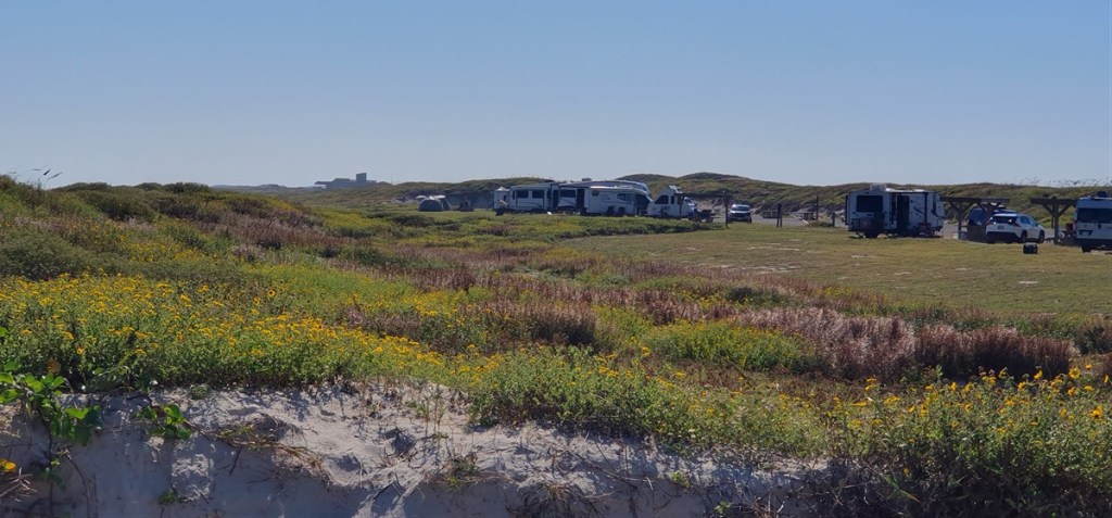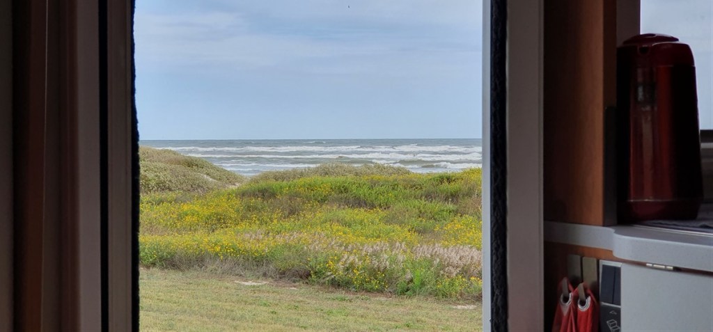Donderdag 6 november. We verlaten het drukke San Antonio en rijden naar het zuiden. Langs Corpus Christi naar Padre Island, een schiereiland voor de kust. Vroeg in de middag rijden we Malaquite Beach Campground op. Net op tijd om het laatste plekje op de eerste rij in de duinen in te pikken. Blijken een uit Nederland afkomstige buurman te hebben. Gezellig! Het is echt een super plekje. Direct aan het strand en een prachtige omgeving.