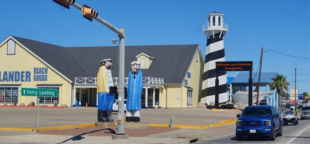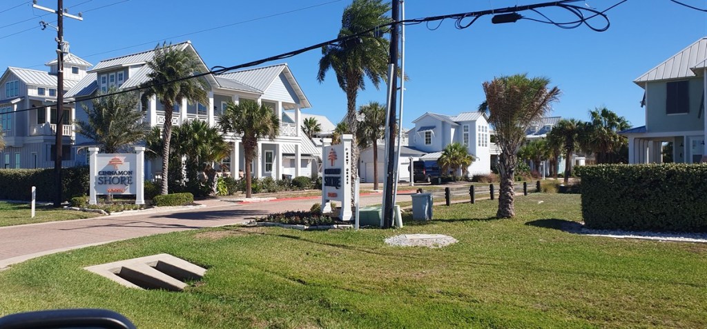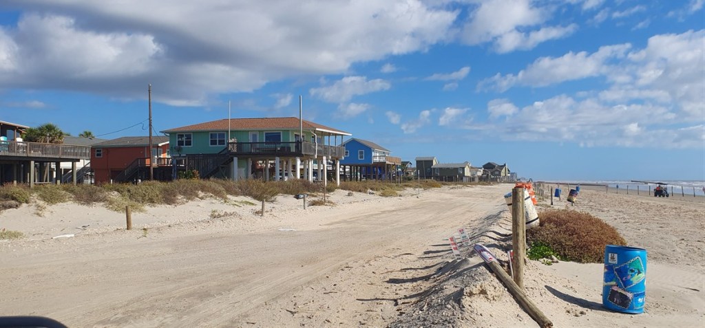 De veerboot brengt ons naar het vaste land en langs de kust gaan we verder naar Magnolia Beach. Een door iedereen geroemde vrije plek waar je pal aan het strand kunt staan…. Wij vinden het eigenlijk niet meer dan een kale strandboulevard, maar goed, we zijn verwend op Padre Island! Opvallend hier de prachtige houten huizen op palen (in verband met stormen en overstromingen).