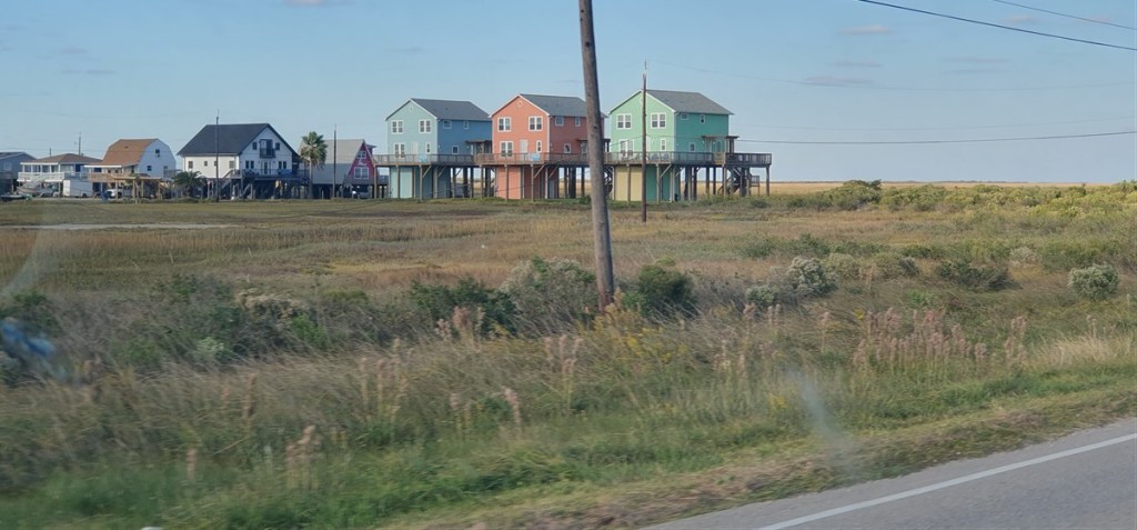 De volgende ochtend rijden we verder langs de kust naar Galveston. Ook hier weer van die mooie huizen in allerlei kleuren. Vooral op de eerste rij aan het strand moet het een geweldige plek zijn om te wonen!