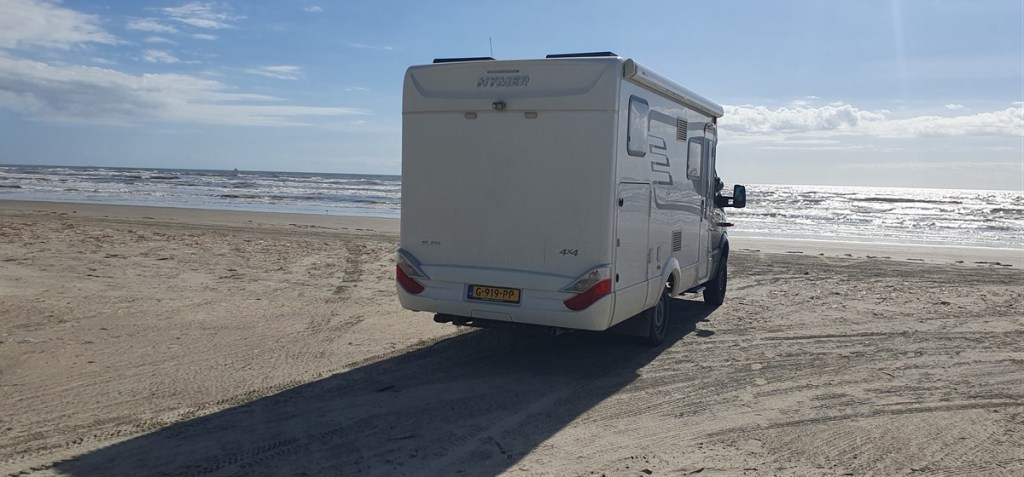 We kijken even met de auto op het strand. Je mag hier rijden en overnachten op het strand. Wel voor eigen risico! Het strand is vrij smal en er wordt gewaarschuwd heel goed op te letten bij vloed…..